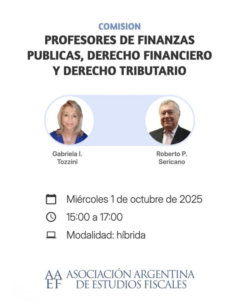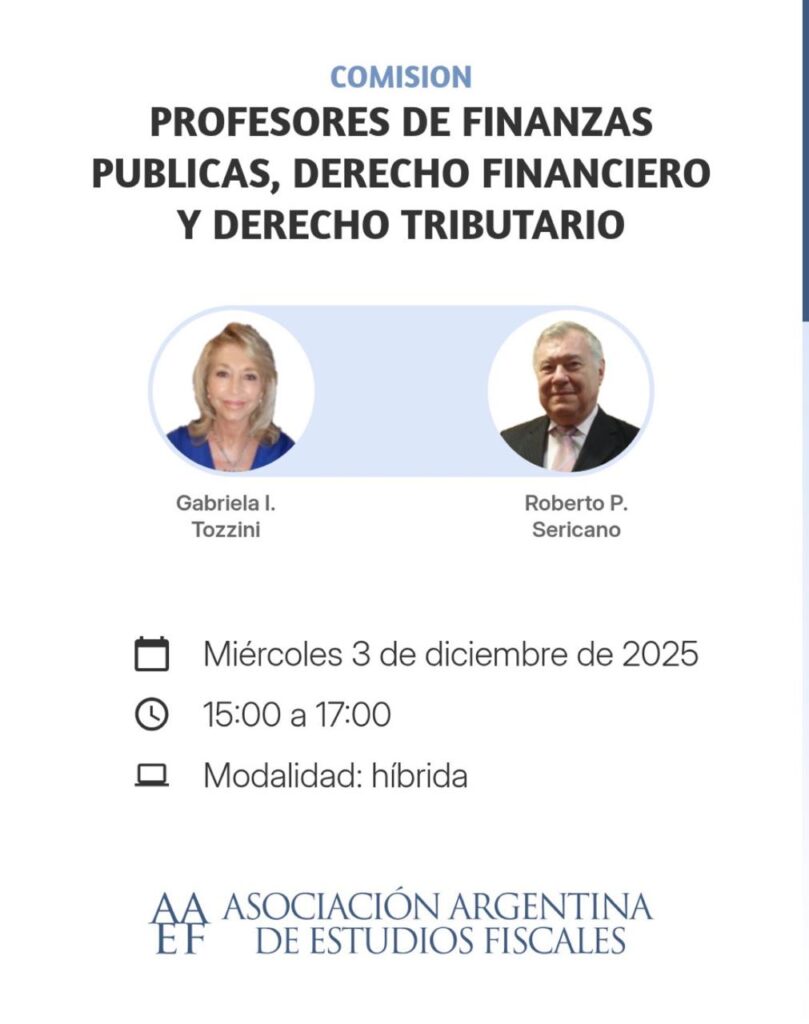 Compartimos las diferentes participaciones de la Dra. Gabriela Tozzini durante el 2025, en calidad de Coordinadora de la “Comisión de Profesores de Finanzas Públicas, Derecho Financiero y Derecho Tributario”.