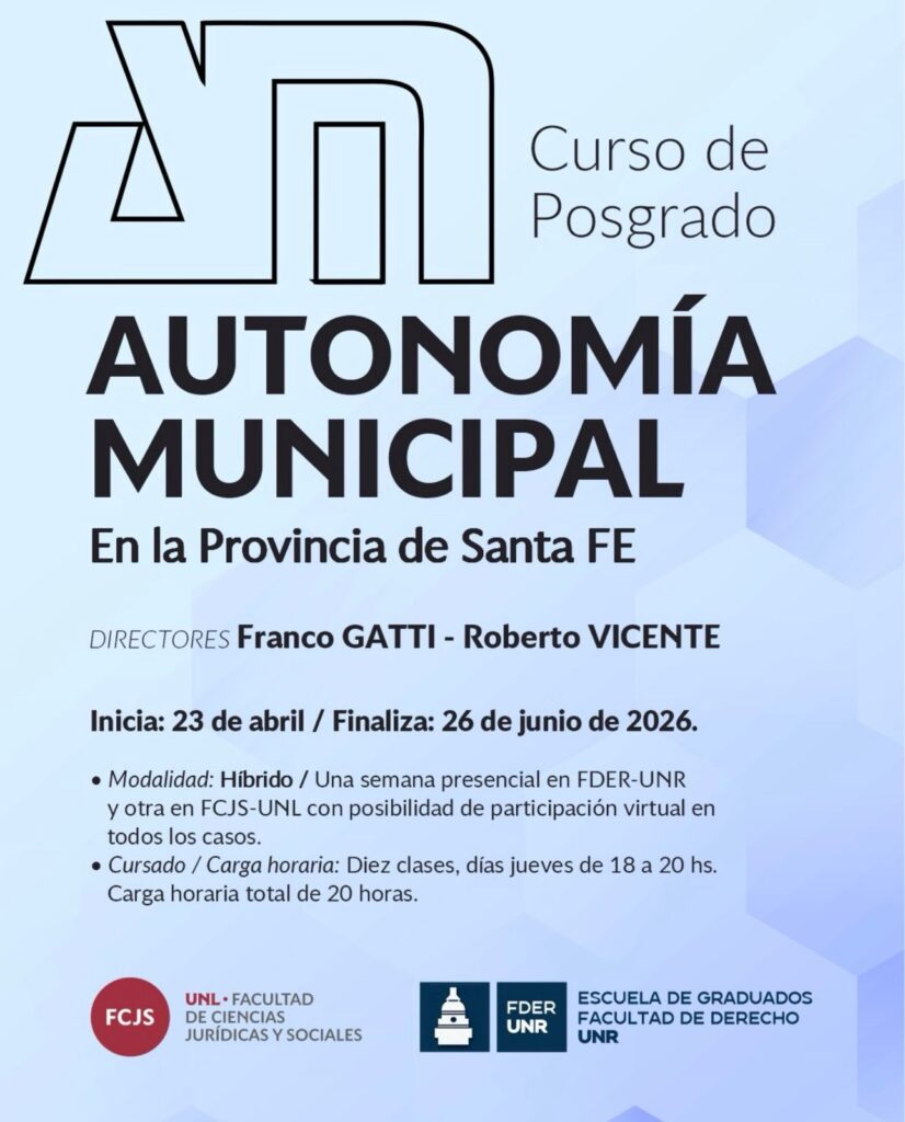 Temas: Autonomía institucional: el dictado de cartas orgánicas; Autonomía económica y financiera: discusiones en torno a los recursos y la responsabilidad fiscal; Autonomía política: régimen electoral y participación ciudadana; Autonomía administrativa: procedimiento administrativo, competencias, servicios públicos y poder de policía; Asociativismo municipal y áreas metropolitanas; Derecho a la ciudad y ordenamiento territorial; Estudio de experiencias comparadas.